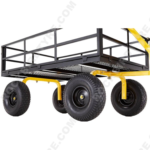 Heavy Duty Steel Wagon TC1210Garden Wagon Cart Heavy Duty Steel Utility Yard Dump Lawn Outdoor Utility Cart with Removable Sides with WheelsCapacity: 1400lbsLength: 52Width: 34 Height: 29 Tires: 15" Pneumatic Turf
